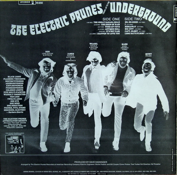 The Electric Prunes' second album was just as uneven as their debut, and lacking the obvious hit material its predecessor had boasted in "I Had Too Much to Dream (Last Night)" and "Get Me to the World on Time." However, at least a more consistent tone and recognizable group identity asserted itself, as the band wrote half of the material. In addition, the periodic airy-fairy vaudevillian misfires that had dotted the first LP were thankfully abolished. Many of the tunes, whether from the band or their frequent outside contributors Annette Tucker and Nancie Mantz, had floridly inscrutable lyrics -- "The Great Banana Hoax," "Children of Rain," "Dr. Do-Good," "Antique Doll" -- of the kind that some hip critics like to scorn as dated and naive flower-power relics. At the best points of this album, though, the Prunes conjured a menacing psychedelic pop atmosphere that, in conjunction with their flair for unusual guitar reverb and sundry special effects, sounded fetchingly spooky and seductive. "Hideaway," with its killer bass riff, and the demented "Dr. Do-Good," a crazed children's hour theme gone amok, were standouts in this regard, while "Long Day's Flight" is one of their best psych-garage tracks. On a more straightforward level, "I Happen to Love You" is one of the best obscure Goffin-King covers you're likely to hear, and one of the bluesiest too. -- Richie Unterberger, All-Music Guide