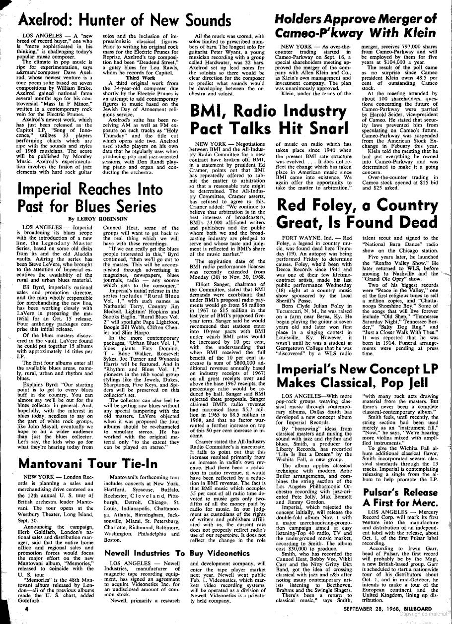 Article on David Axelrod and Electric Prunes in Billboard Magazine