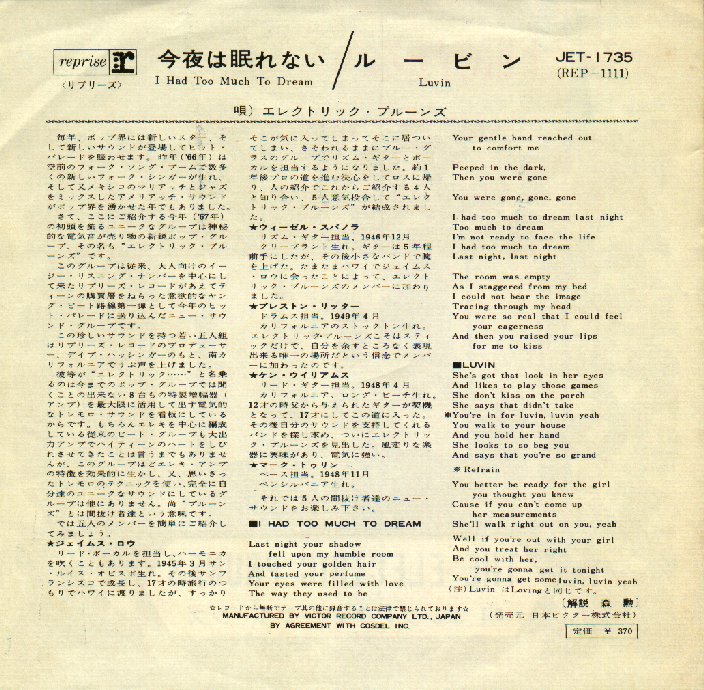 I Had Too Much To Dream (Last Night) b/w Luvin'